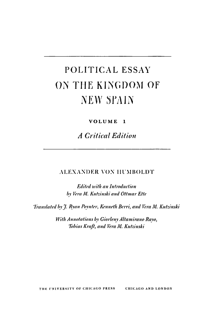 Previous:Political Essay on the Kingdom of New Spain (Volume 2) Next:Political Essay on the Island of Cuba